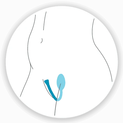 Insert the trainer by gently sliding the larger, rounded end into the vagina until it sits comfortably. The tail of the trainer should remain outside the body, curling up towards the belly button.